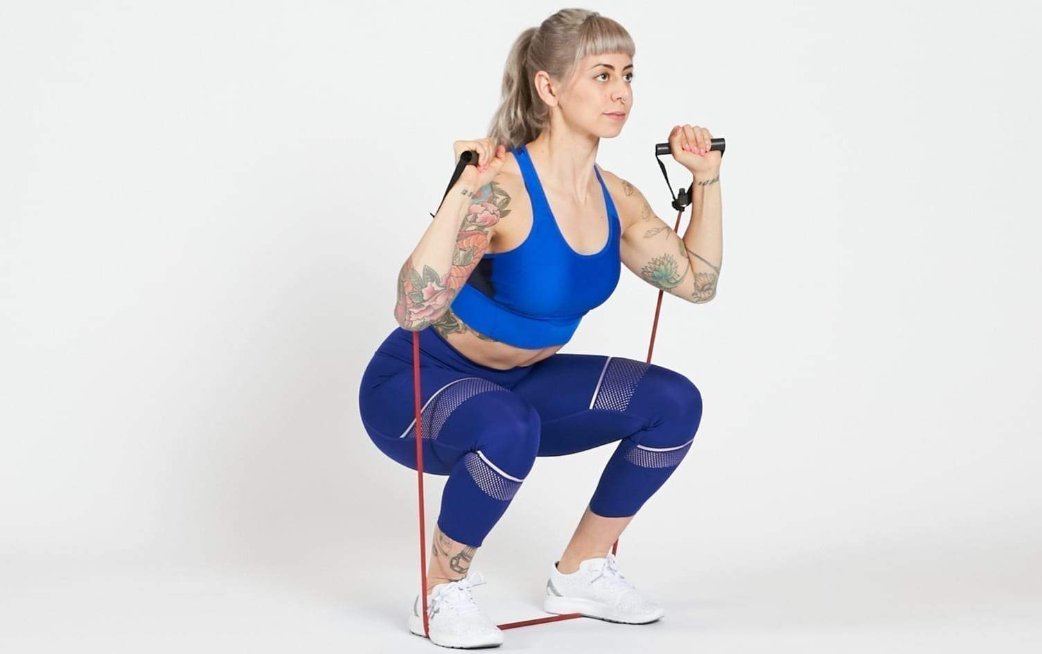 • Perform Numerous Exercises: You can perform bicep curls or overhead presses, do tricep pushdowns, chest exercises, or shoulder rotations. You can also do exercises on the floor like seated bicep curls, reverse crunches, and glute bridge.
